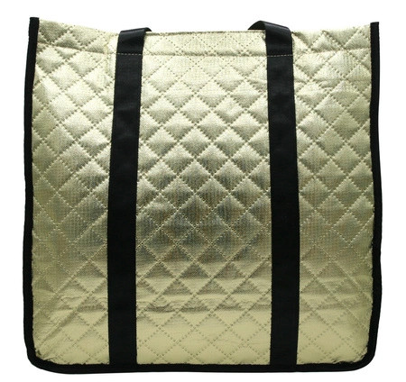 Złota pikowana torebka firmy Rovicky. Pojemna i lekka super sprawdzi się na zakupy bądź piknik aby pomieścić dużo a jednocześnie mieć wygodę.