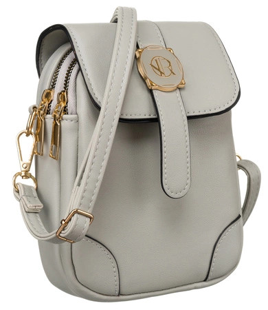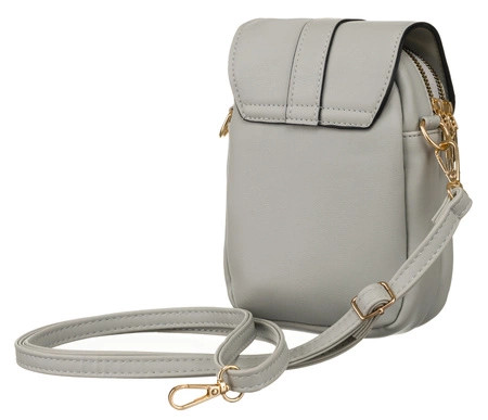Torebko Portfel na ramię ze skóry ekologicznej wykończonej złotymi okuciami. Torebka ma dwie komory zamykane suwakiem oraz klapką z klipsem magnetycznym. W komplecie odpinany długi pasek na ramię.