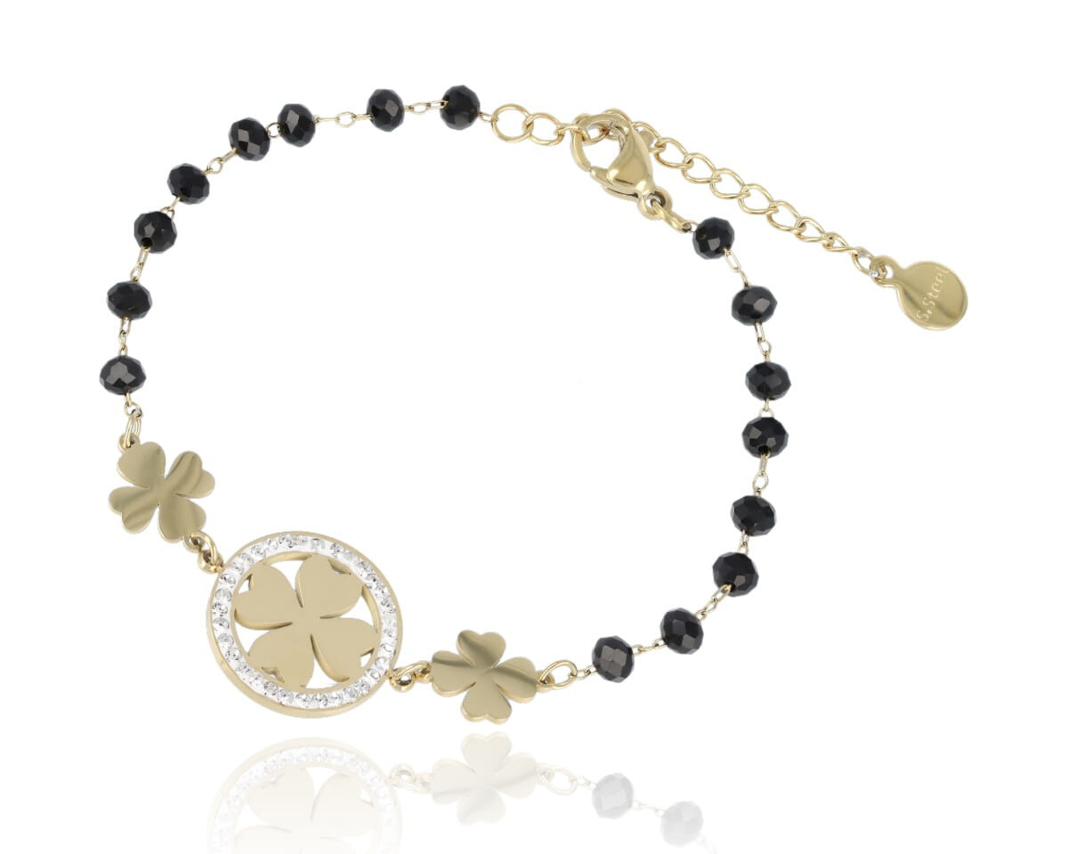 Bransoletka na Nogę Koniczyna uzupełni twoją stylizację podczas wakacji bądź na imprezie , wykonana ze stali szlachetnej 316 L oraz koralików z tworzywa sztucznego w kolorze czarnym.