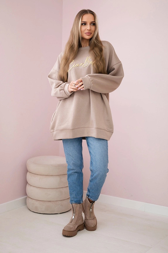 Bluza bawełniana ocieplana z napisem haftowanym Ciao Bella to wyjątkowy i elegancki element garderoby, który łączy w sobie komfort bawełny z oryginalnym haftem .Haft jest subtelny i trwały, co sprawia, że bluza będzie wyglądać elegancko przez wiele sezonów. Bluza ocieplana jest wykonana z bawełny, co sprawia, że jest przyjemna w noszeniu i odpowiednia na różne pory roku. Można ją nosić na wiele różnych okazji, od casualowych spotkań ze znajomymi po bardziej formalne wyjścia, zależnie od tego, jak ją zestawisz z innymi elementami garderoby. Rozmiar jest uniwersalny i będzie odpowiedni dla Pań noszących rozmiar S, M lub L.
